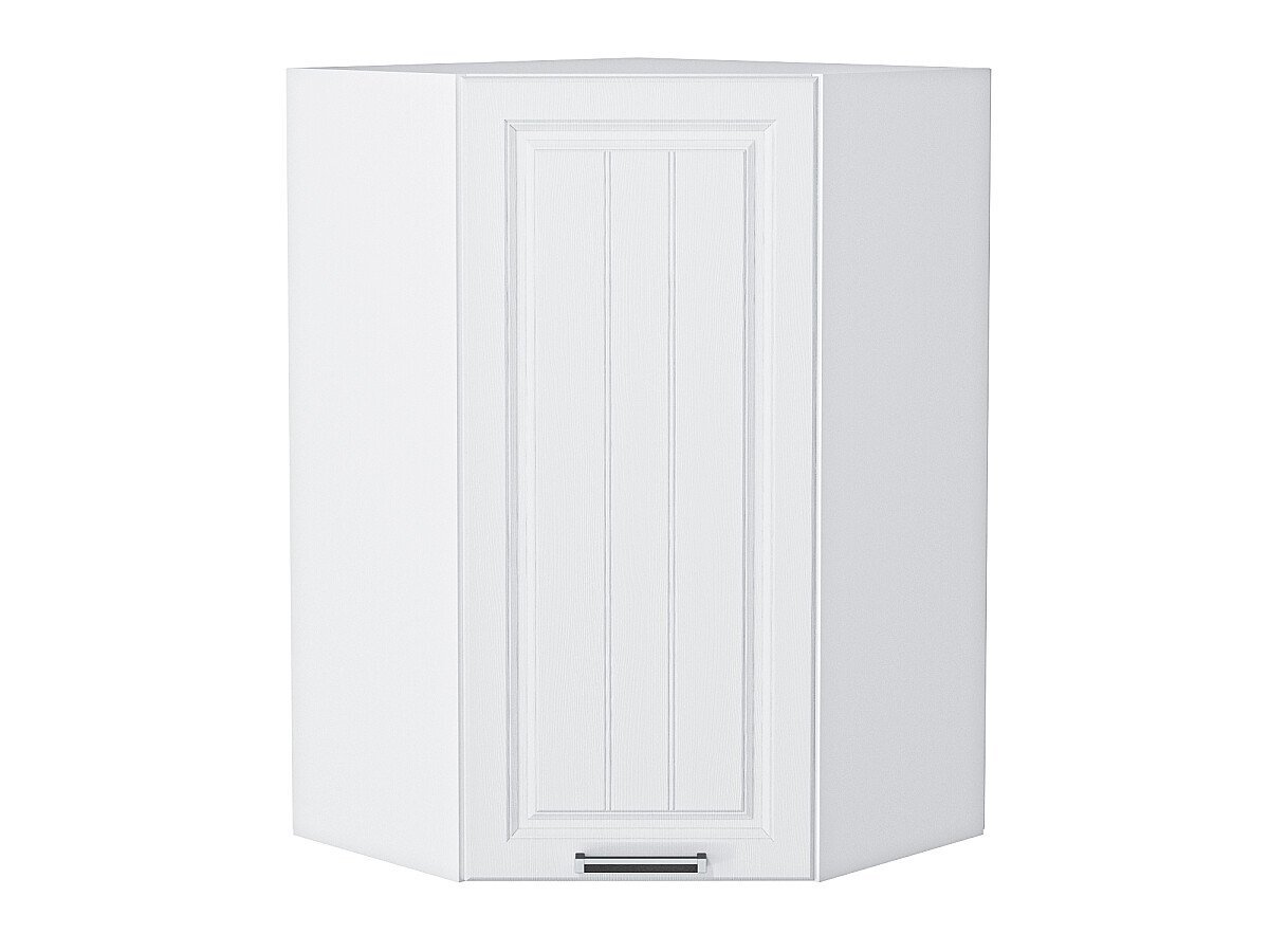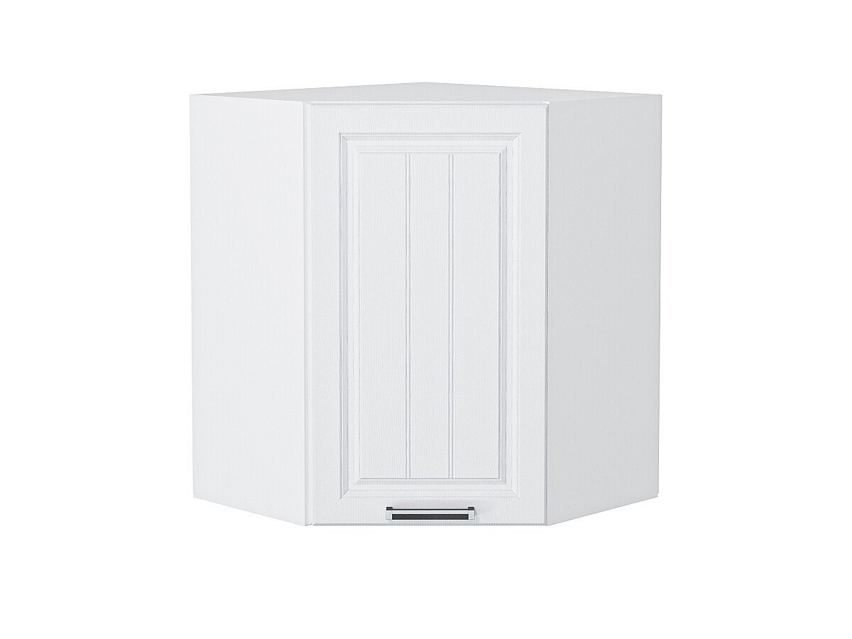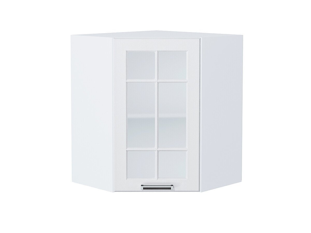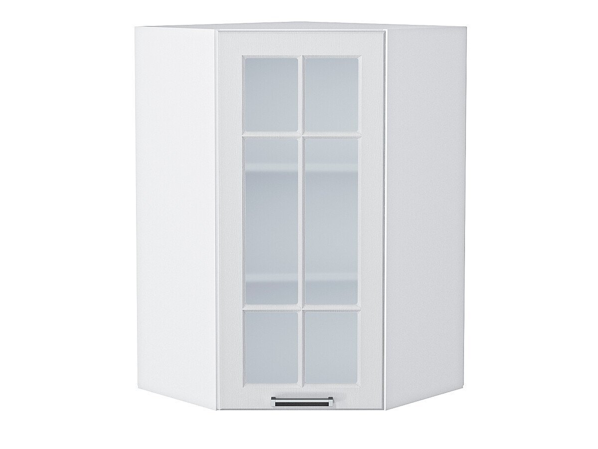 Шкаф верхний угловой со стеклом Сатинато белое,
