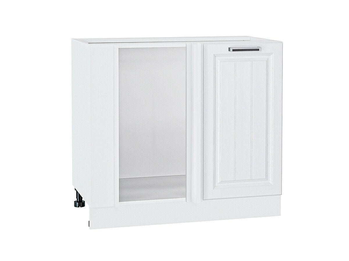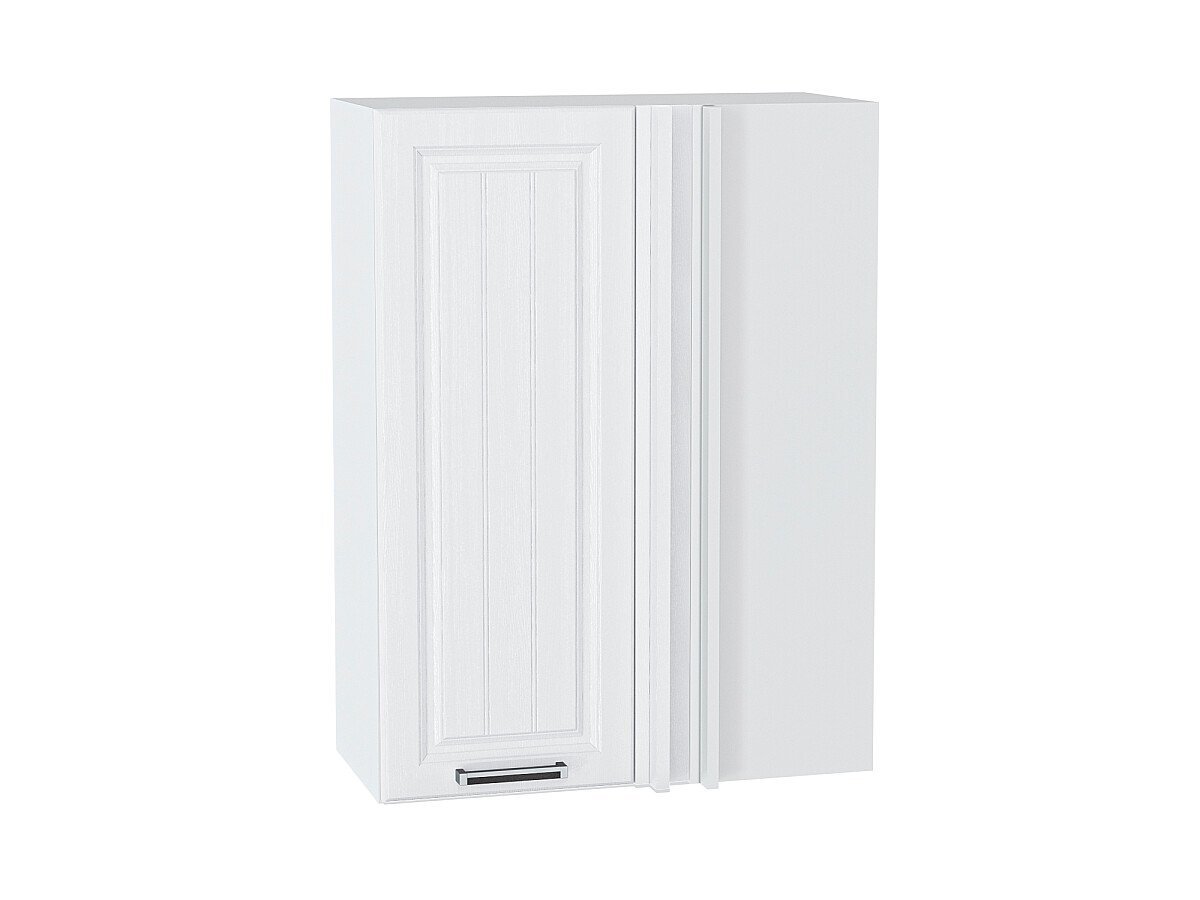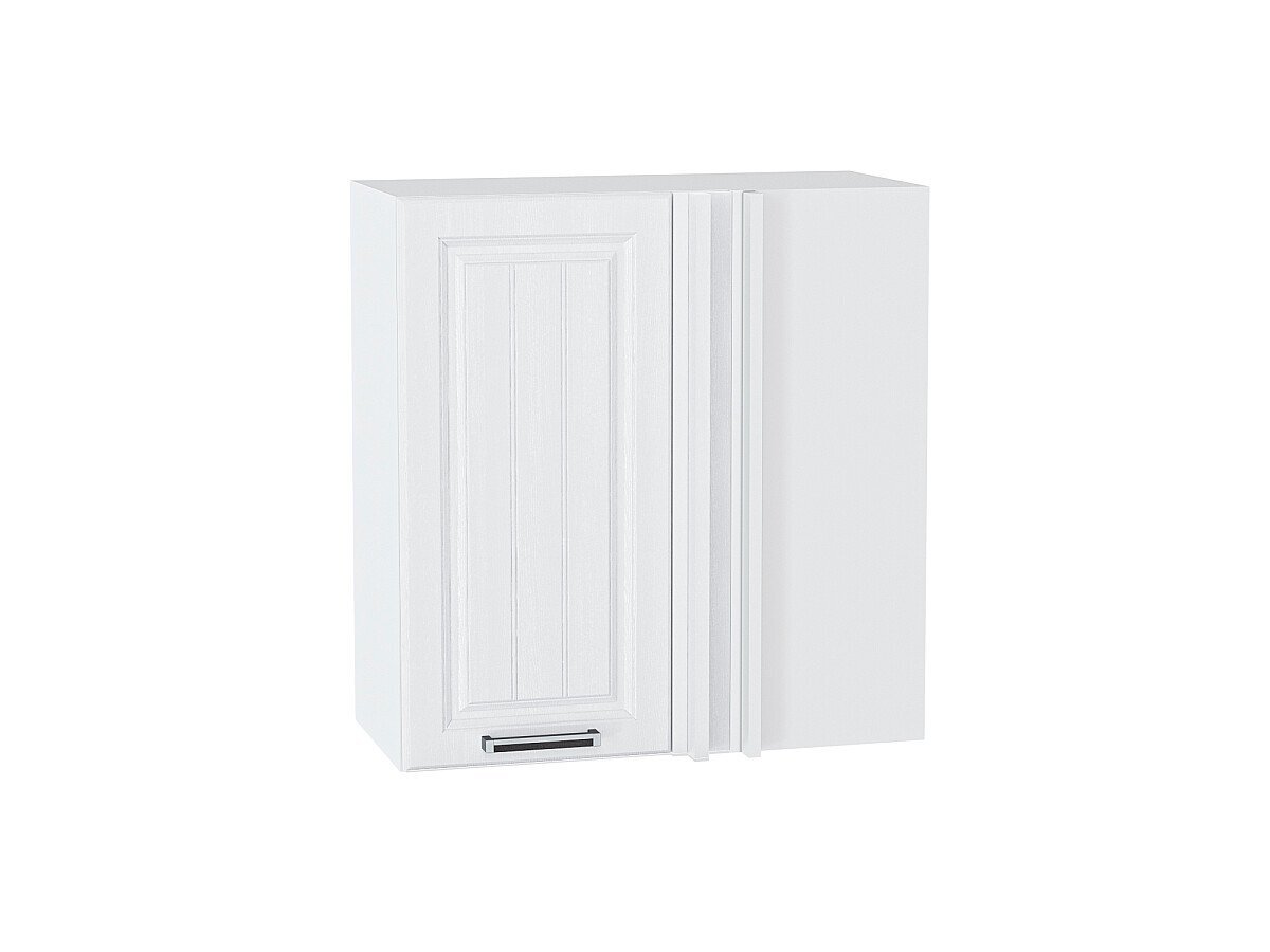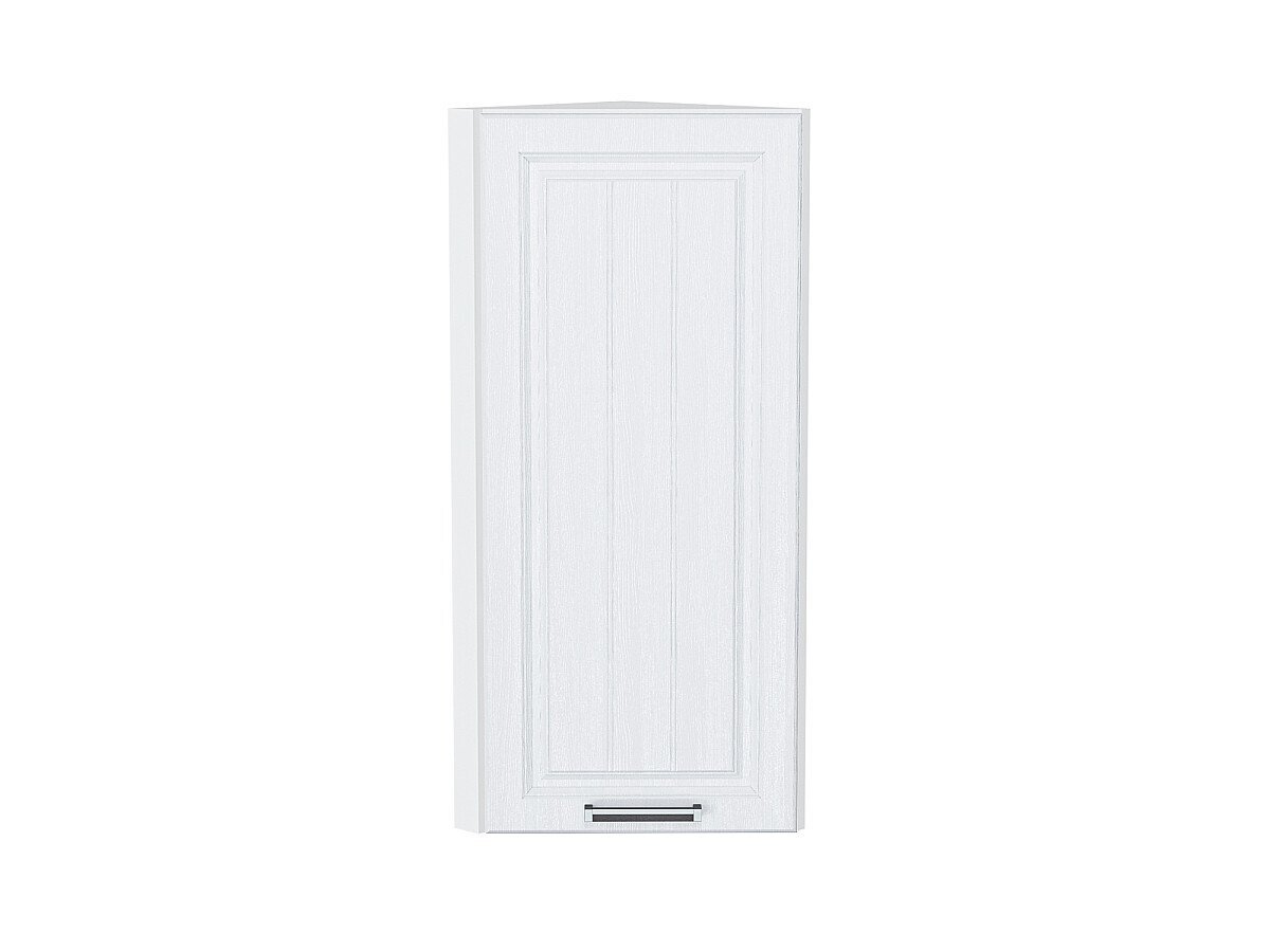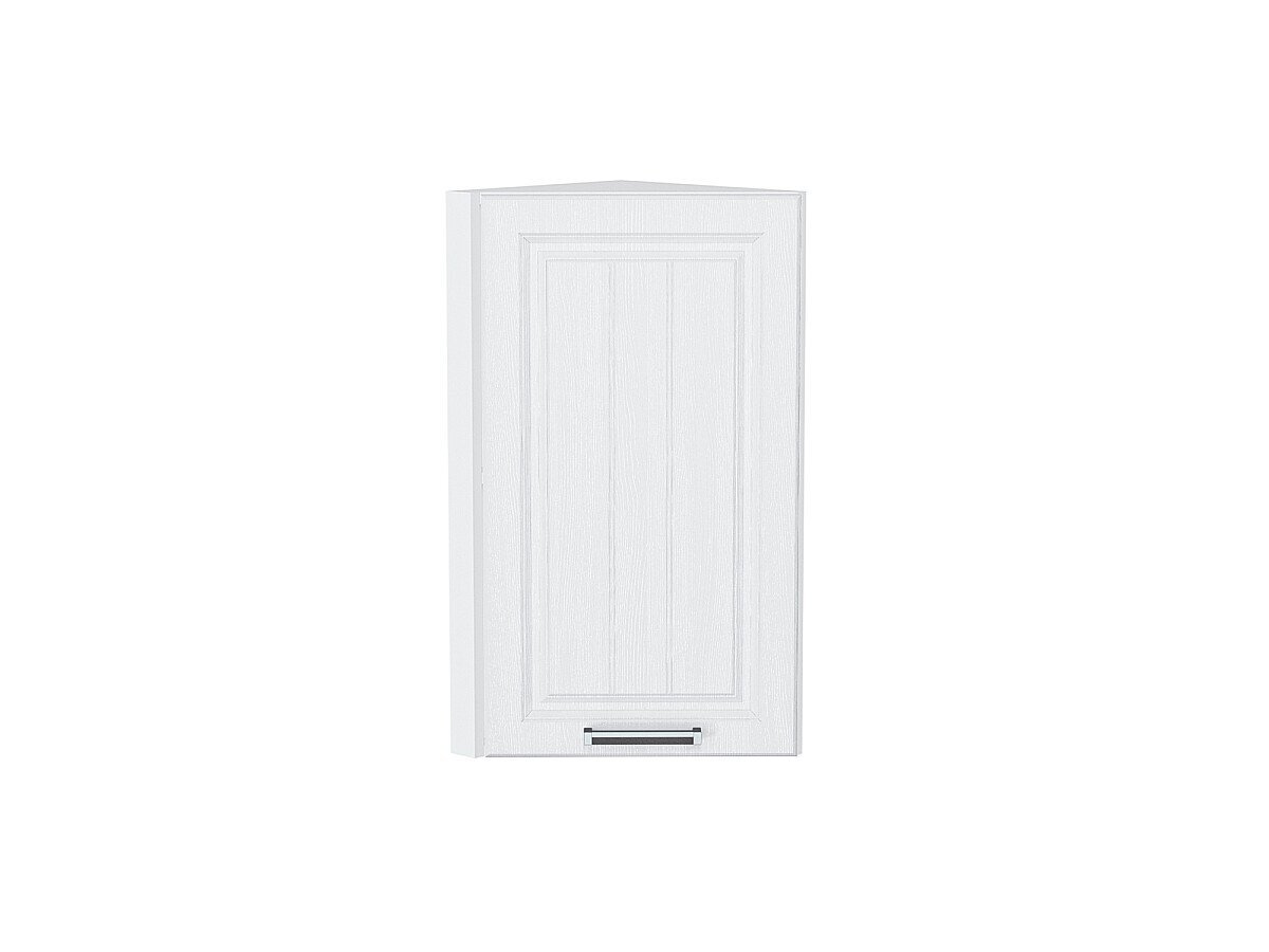 Шкаф верхний угловой со стеклом Сатинато белое,