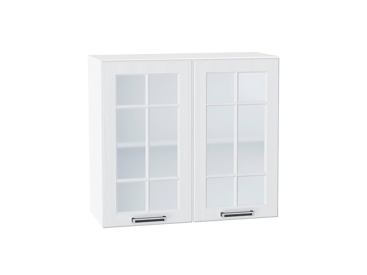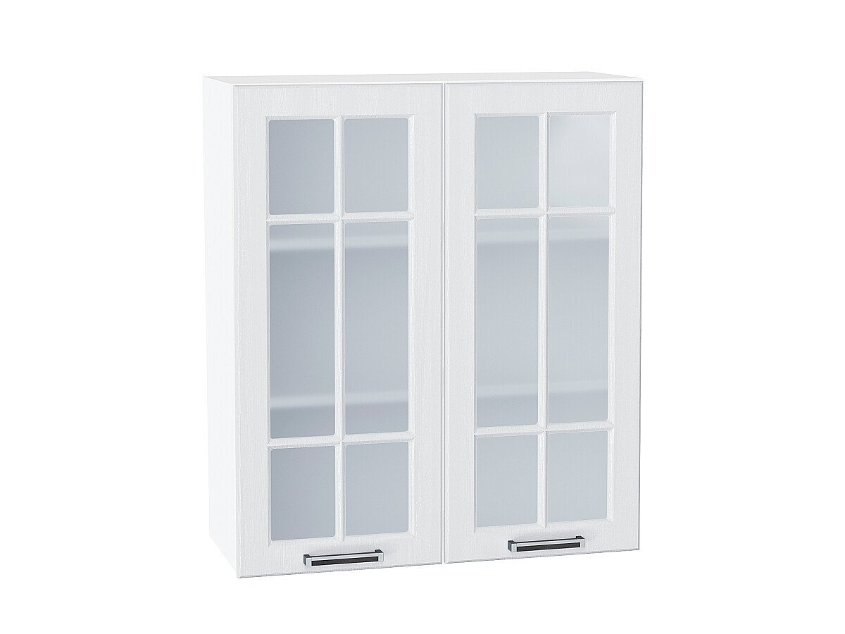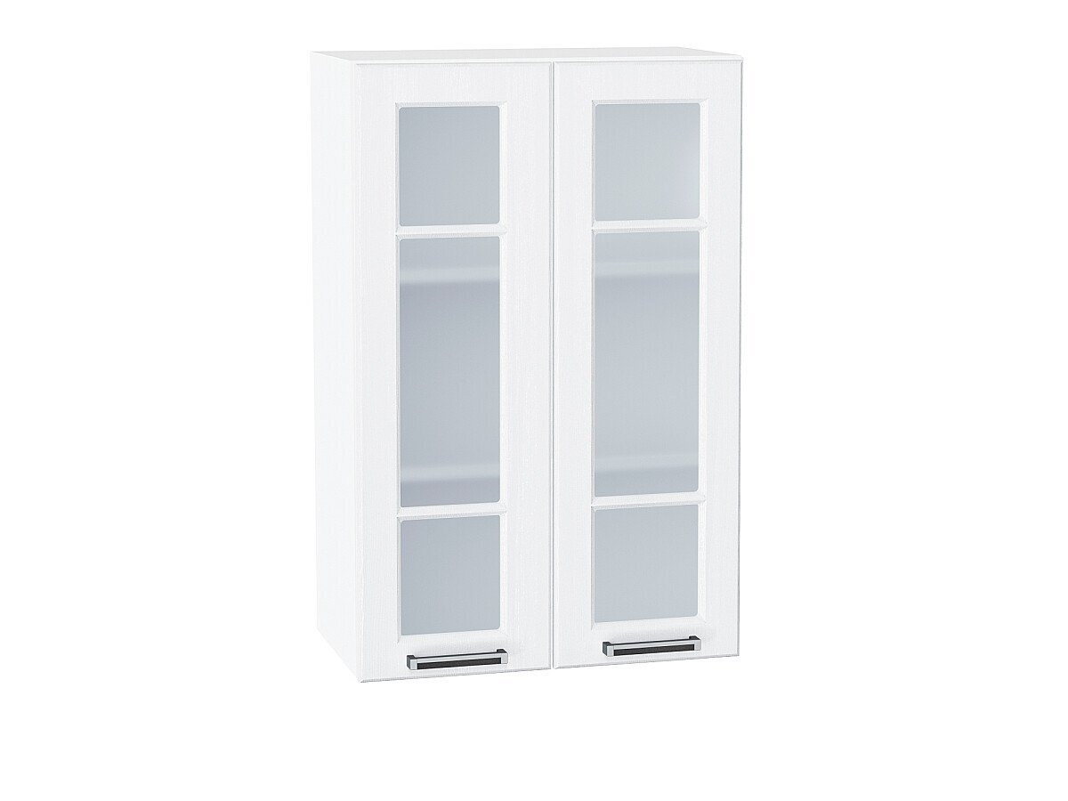 Шкаф верхний с 2-мя дверцами со стеклом Сатинато белое,