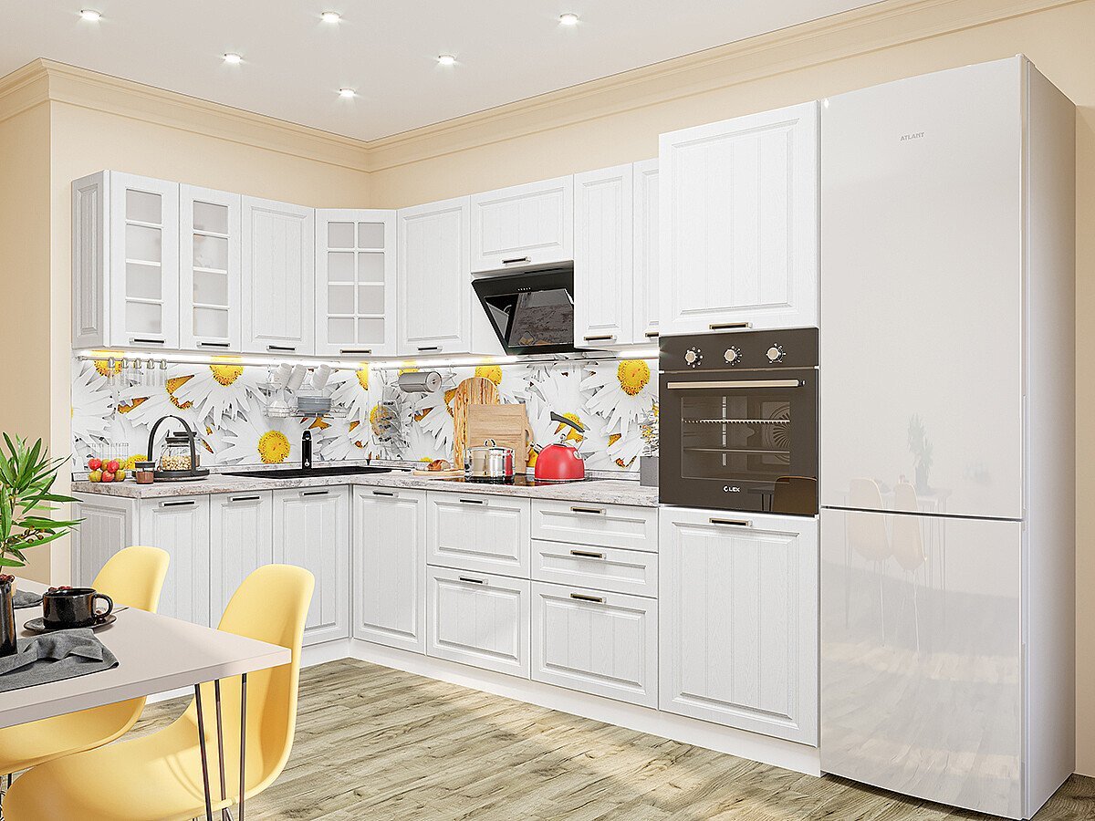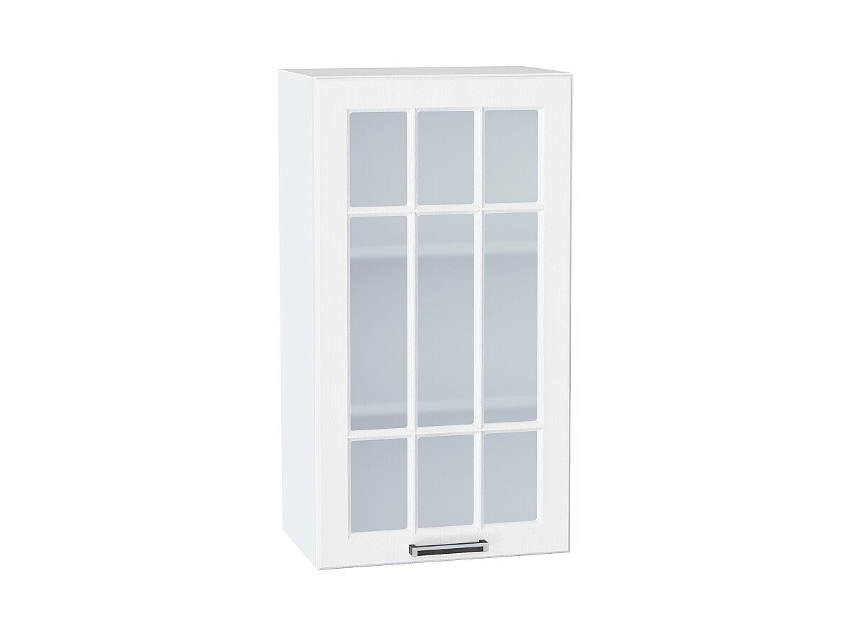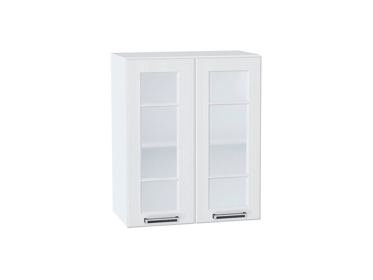 Шкаф верхний с 2-мя дверцами со стеклом Сатинато белое,
