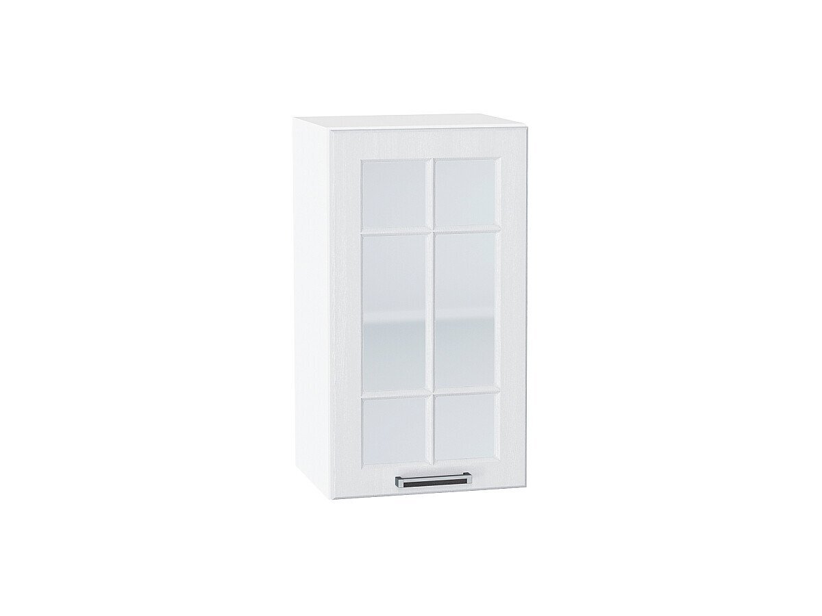 Шкаф верхний с 1-ой дверцей со стеклом Сатинато белое,